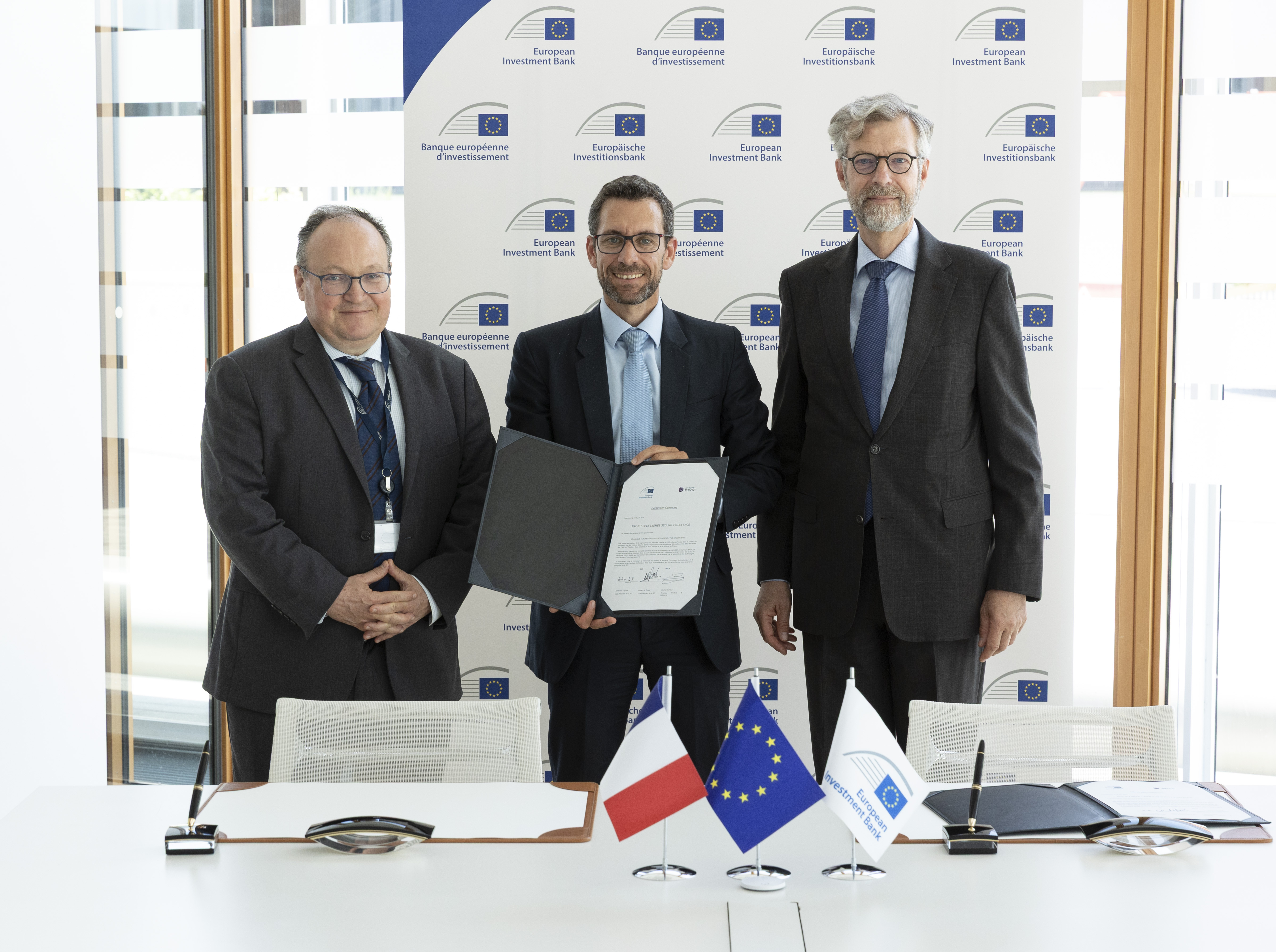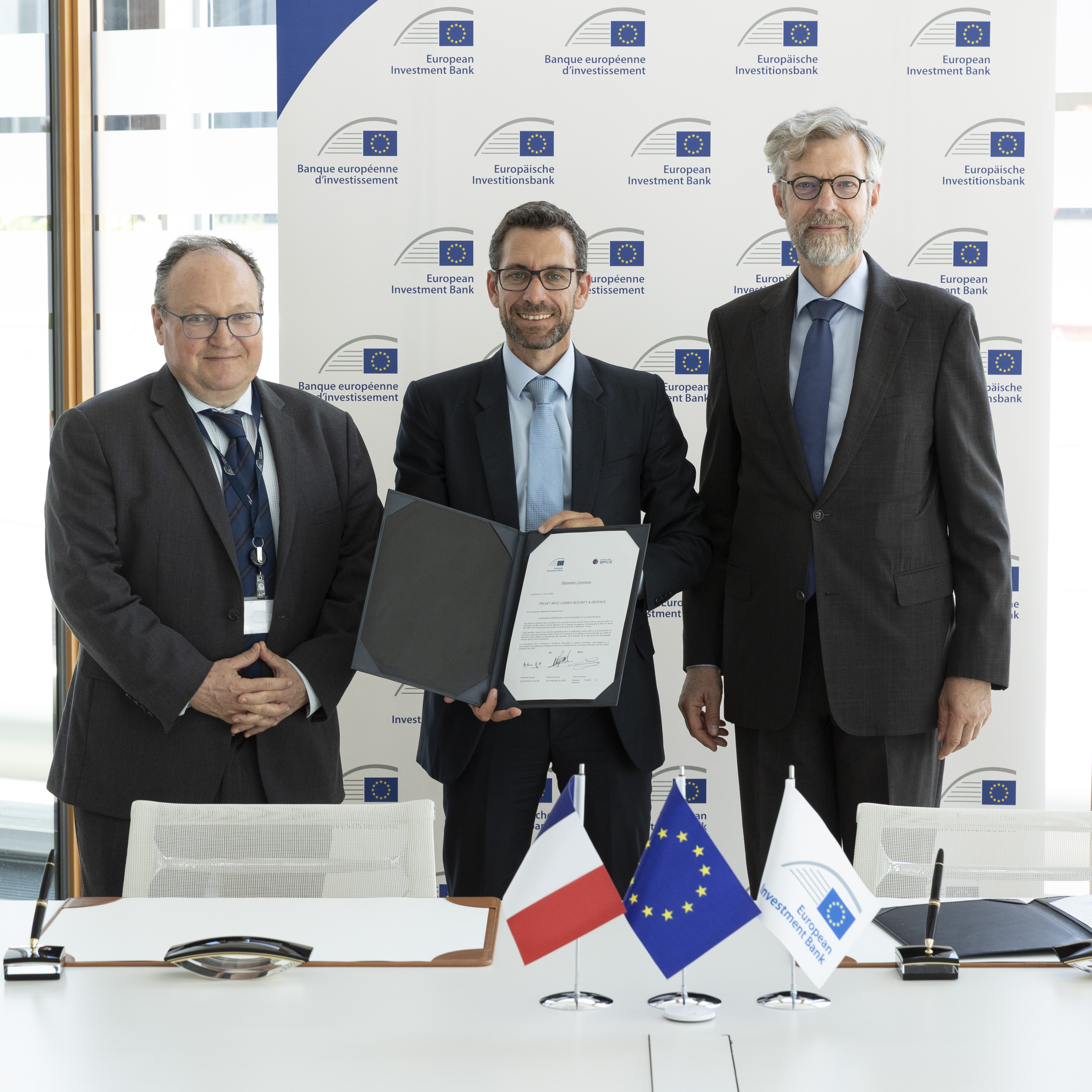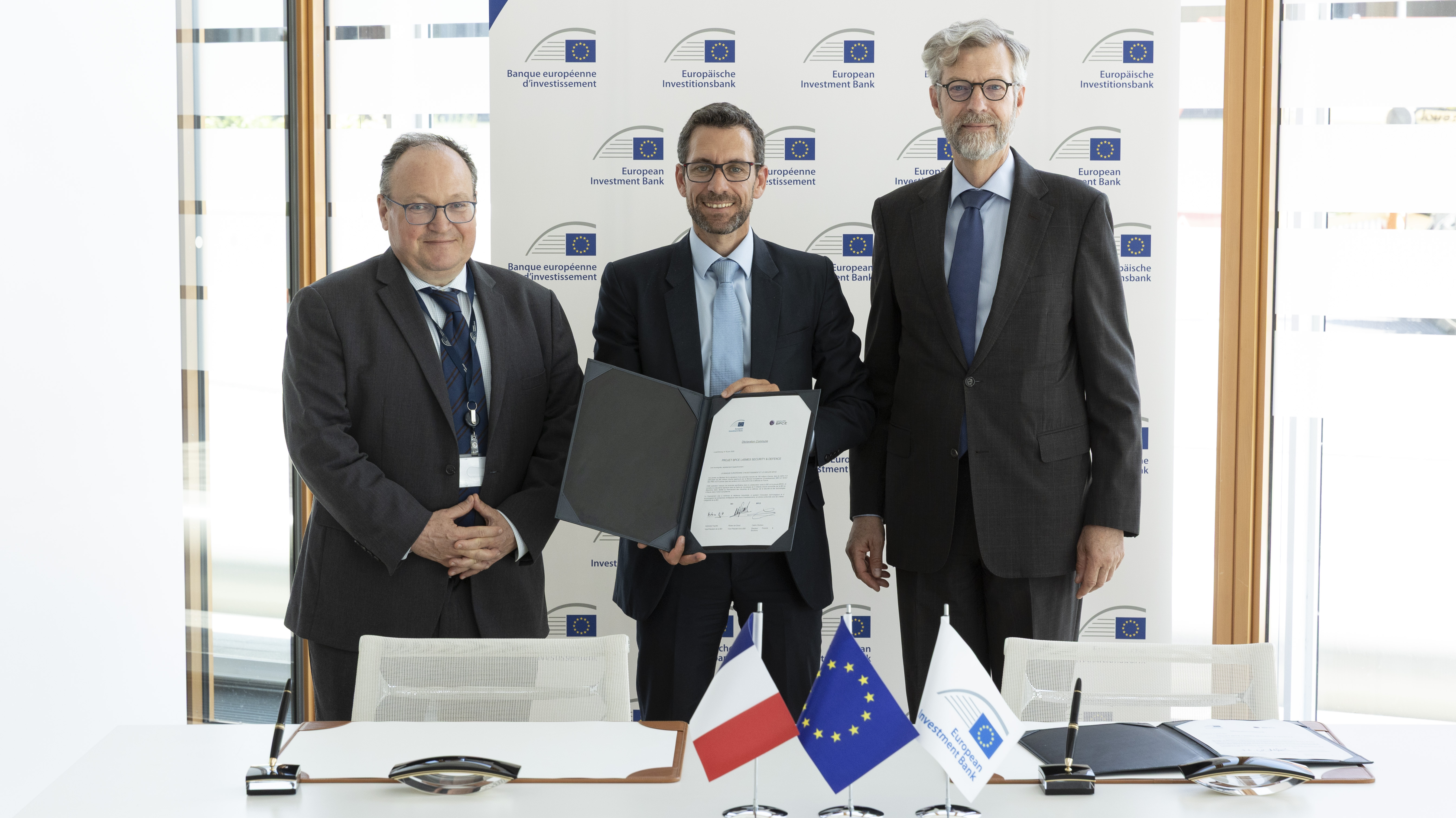 From left to right: Ambroise Fayolle, Vice-President of the EIB responsible for operations in France;Cédric Glorieux, Head of Products and Solutions Banque Populaire and Caisse d'Epargne;Robert de Groot, Vice-President of the EIB responsible for security and defence.