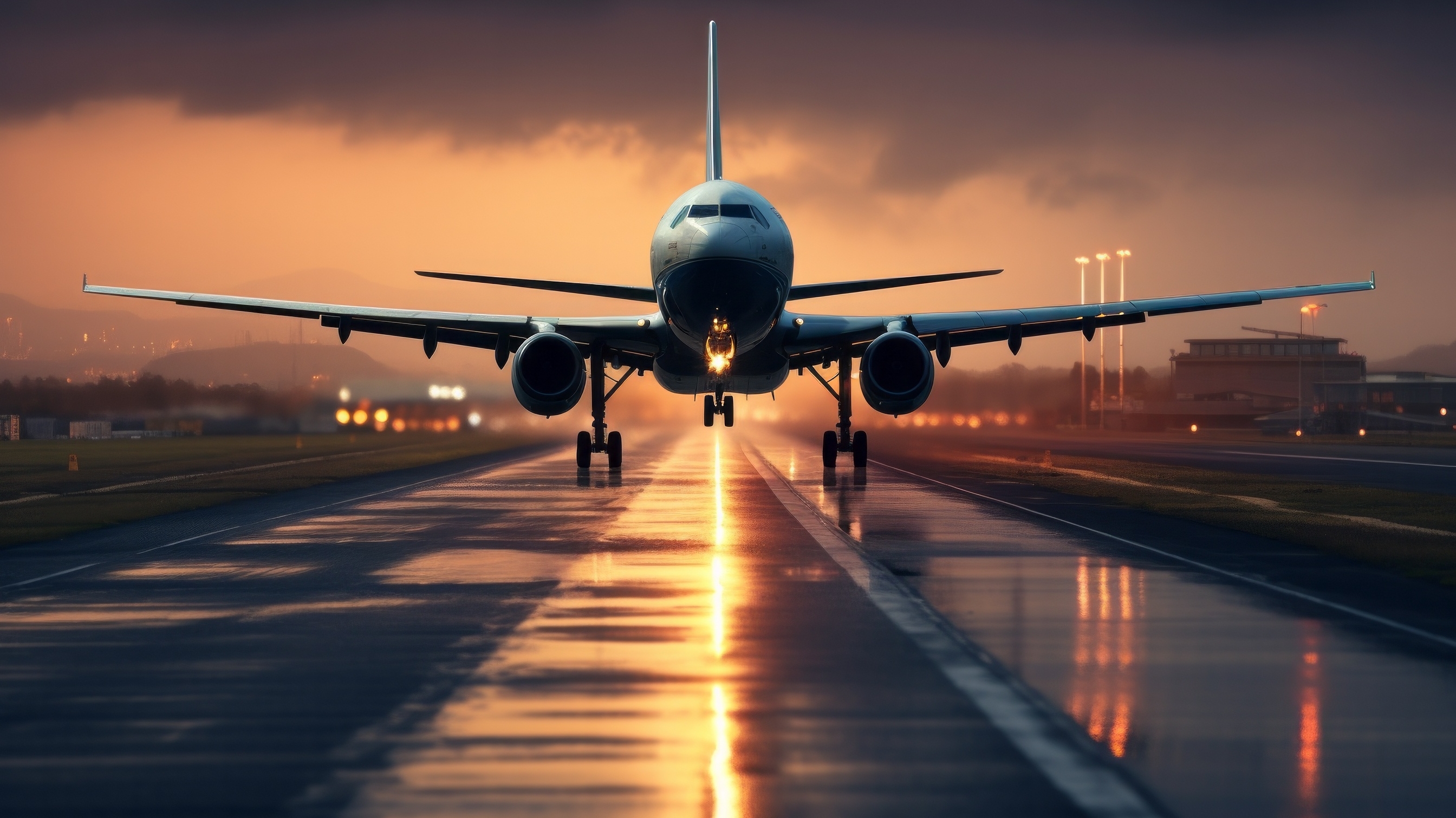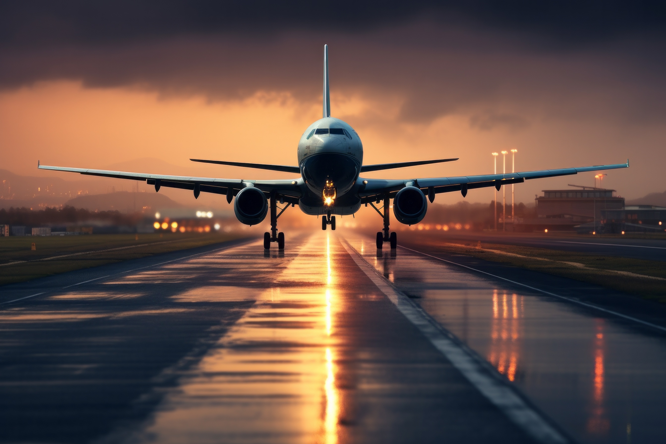 Airbus A321ceo airplane taxiing on runway at sunset, financed by Natixis CIB for LATAM Airlines Group.