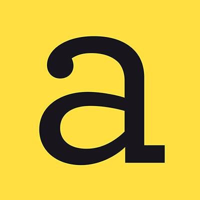Black lowercase 'a' in a modern serif font centered on a bright yellow square background, representing Amazon's early branding identity.