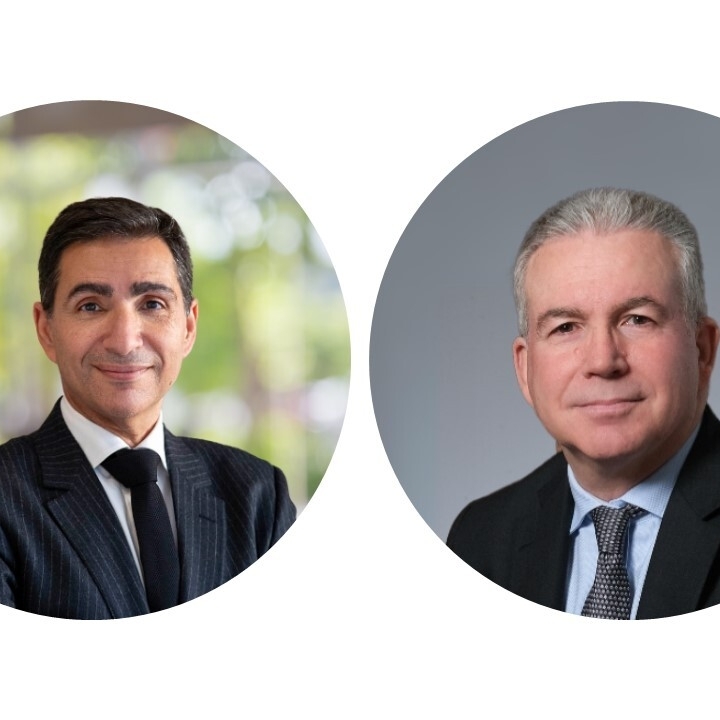 Portraits of Mohamed Kallala, Chief Executive Officer of Natixis Corporate & Investment Banking, and Philippe Setbon, Deputy Chief Executive Officer of Natixis Asset & Wealth Management.