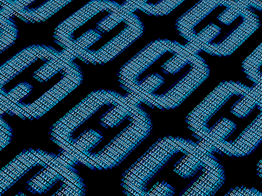 Illustration of interconnected digital blockchain links composed of binary code, symbolizing secure, decentralized data and transaction networks.