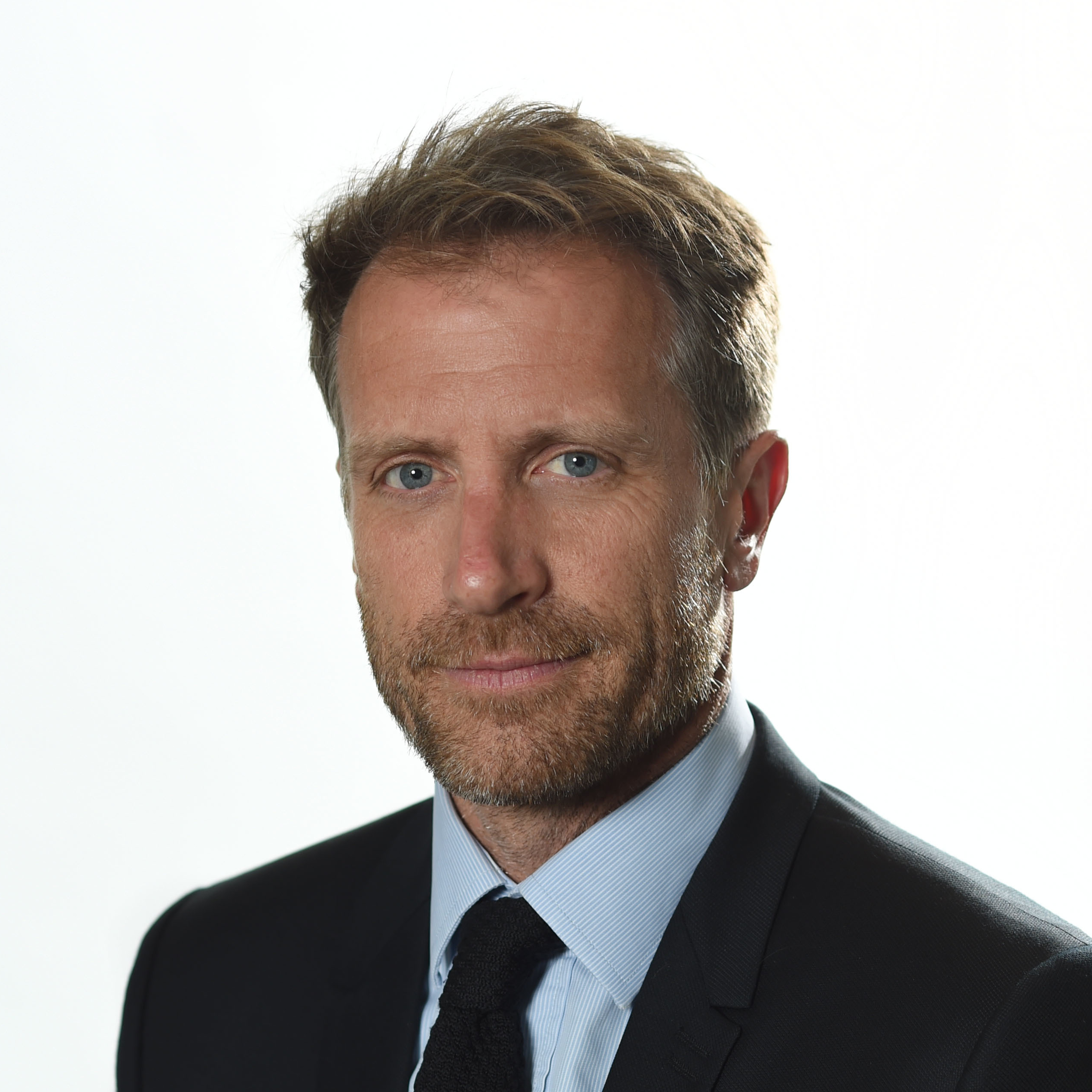 Portrait of a Natixis Global Markets Research executive in formal business suit on a white background