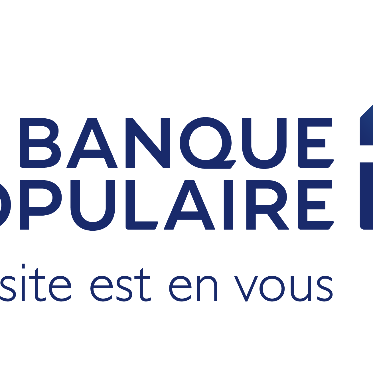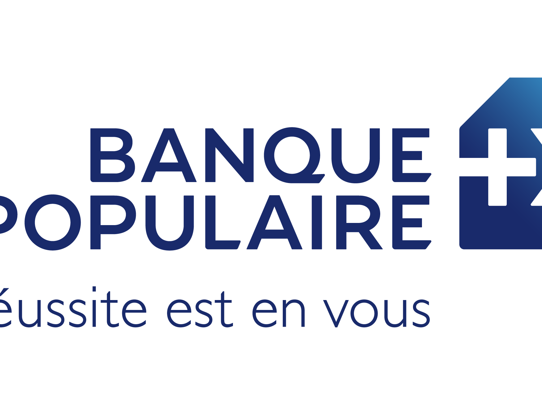 Banque Populaire logo with the slogan 'la réussite est en vous' and a blue hexagonal emblem marked '+X'.