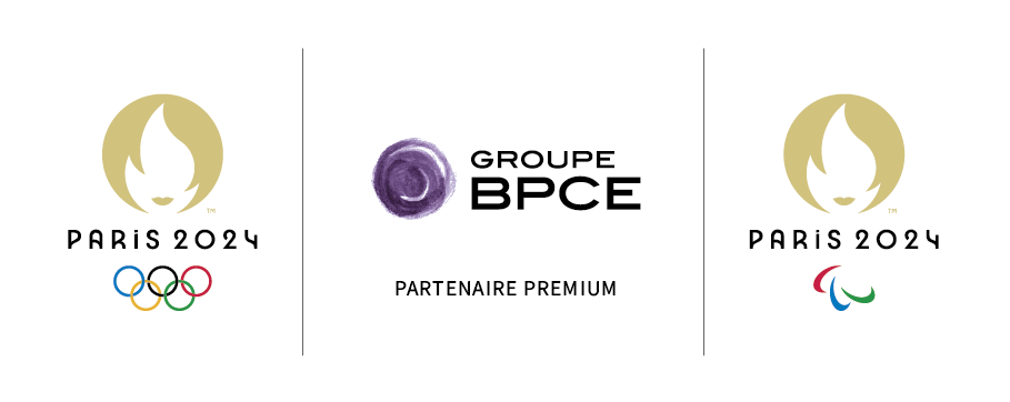 Logo composition highlighting Groupe BPCE as a premium partner of the Paris 2024 Olympic and Paralympic Games