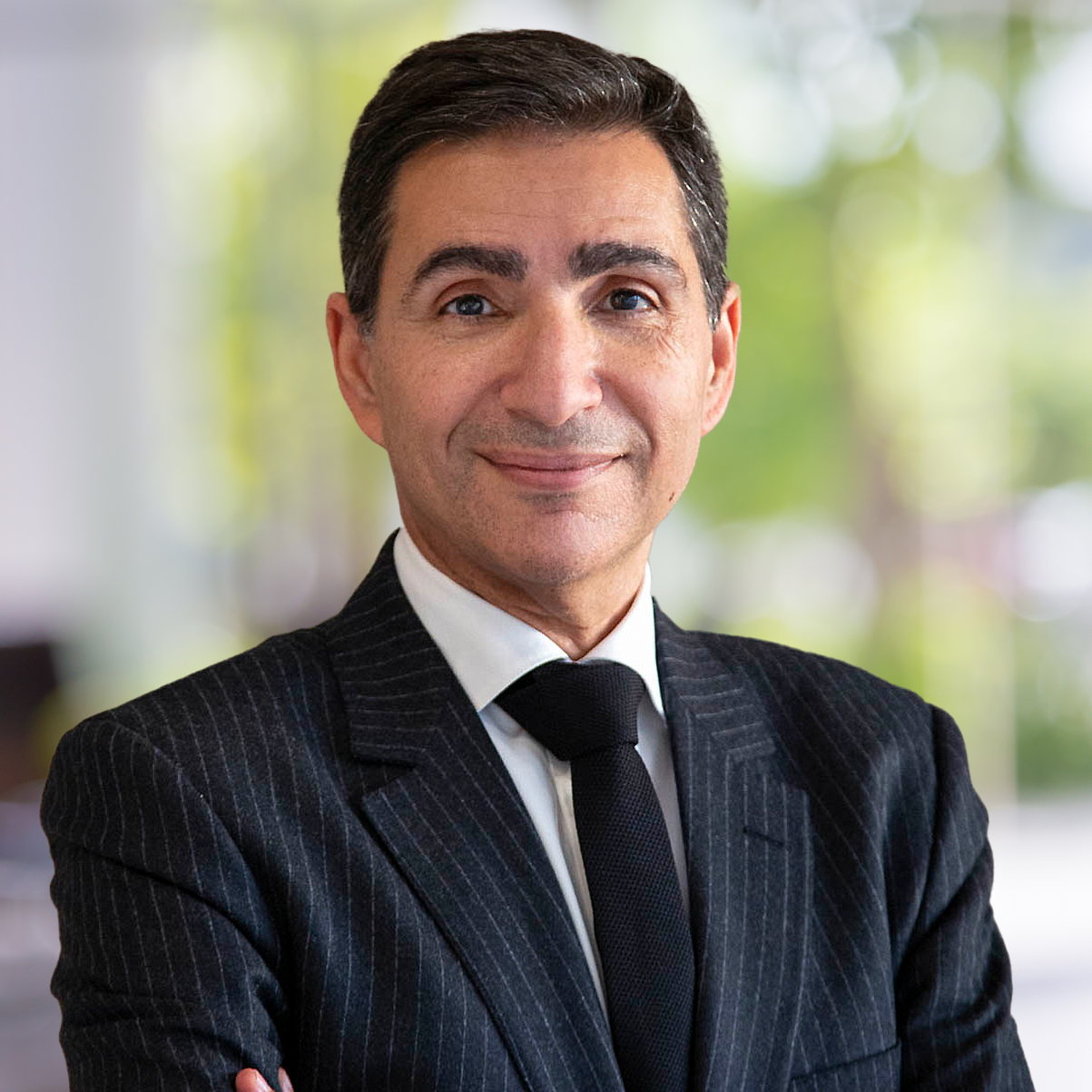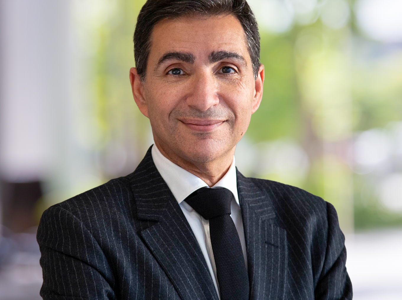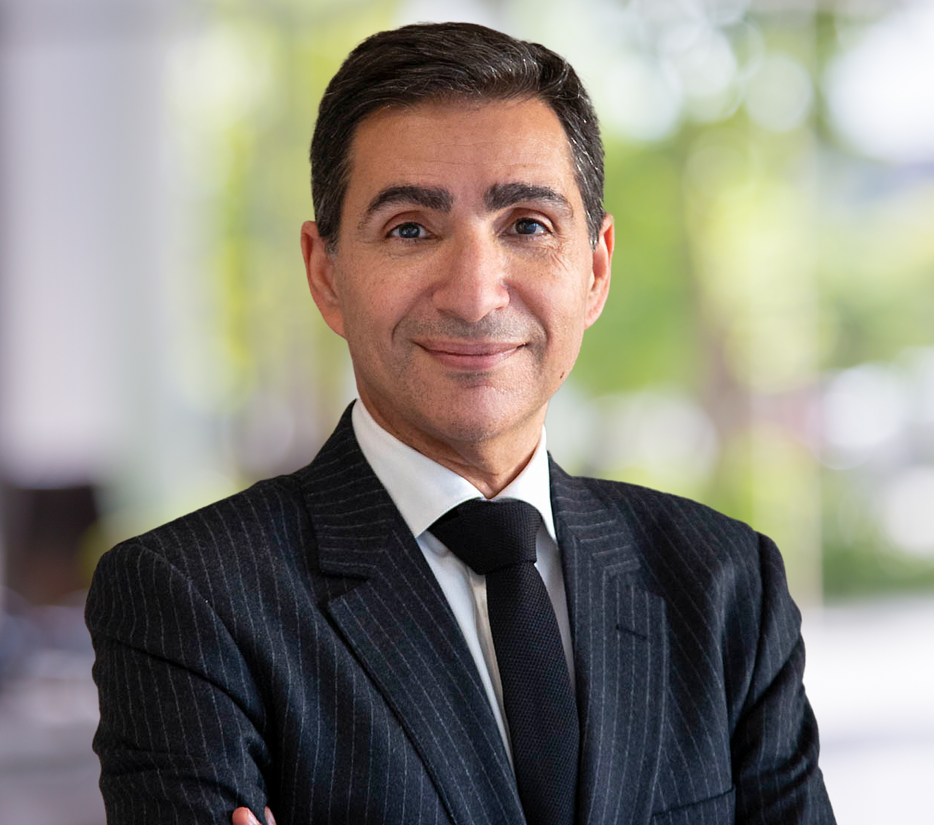 Portrait of Mohamed Kallala, Chief Executive Officer of Natixis Corporate & Investment Banking, wearing pinstripe suit with arms crossed.