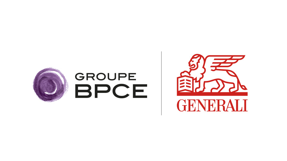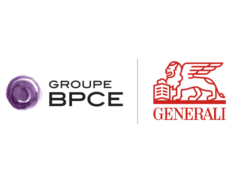 Logos of Groupe BPCE and Generali side by side on white background, representing the asset management joint venture announcement.