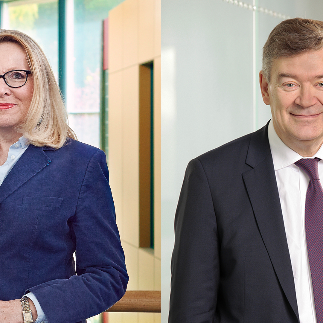 Portraits of two Natixis board directors standing indoors, illustrating a governance and appointment announcement within BPCE Group.