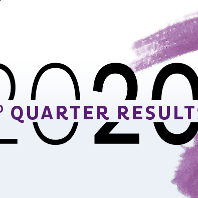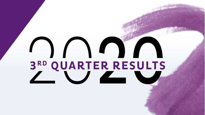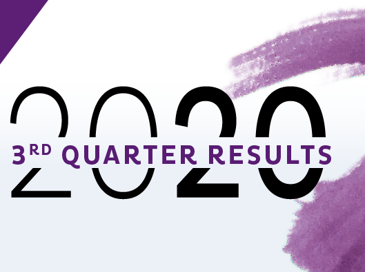 Visual announcing Natixis 2020 third quarter financial results with bold 2020 typography and purple design elements.