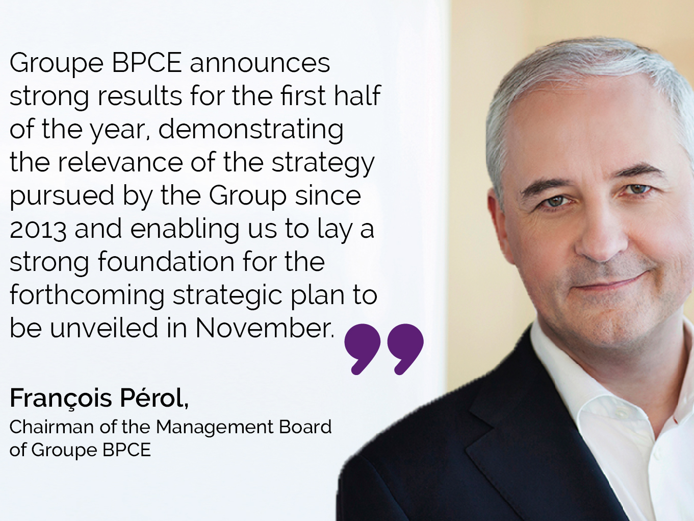Quotation of François Pérol, Chairman of the Management board of Groupe BPCE, regarding the results for the second quarter and first half of 2017