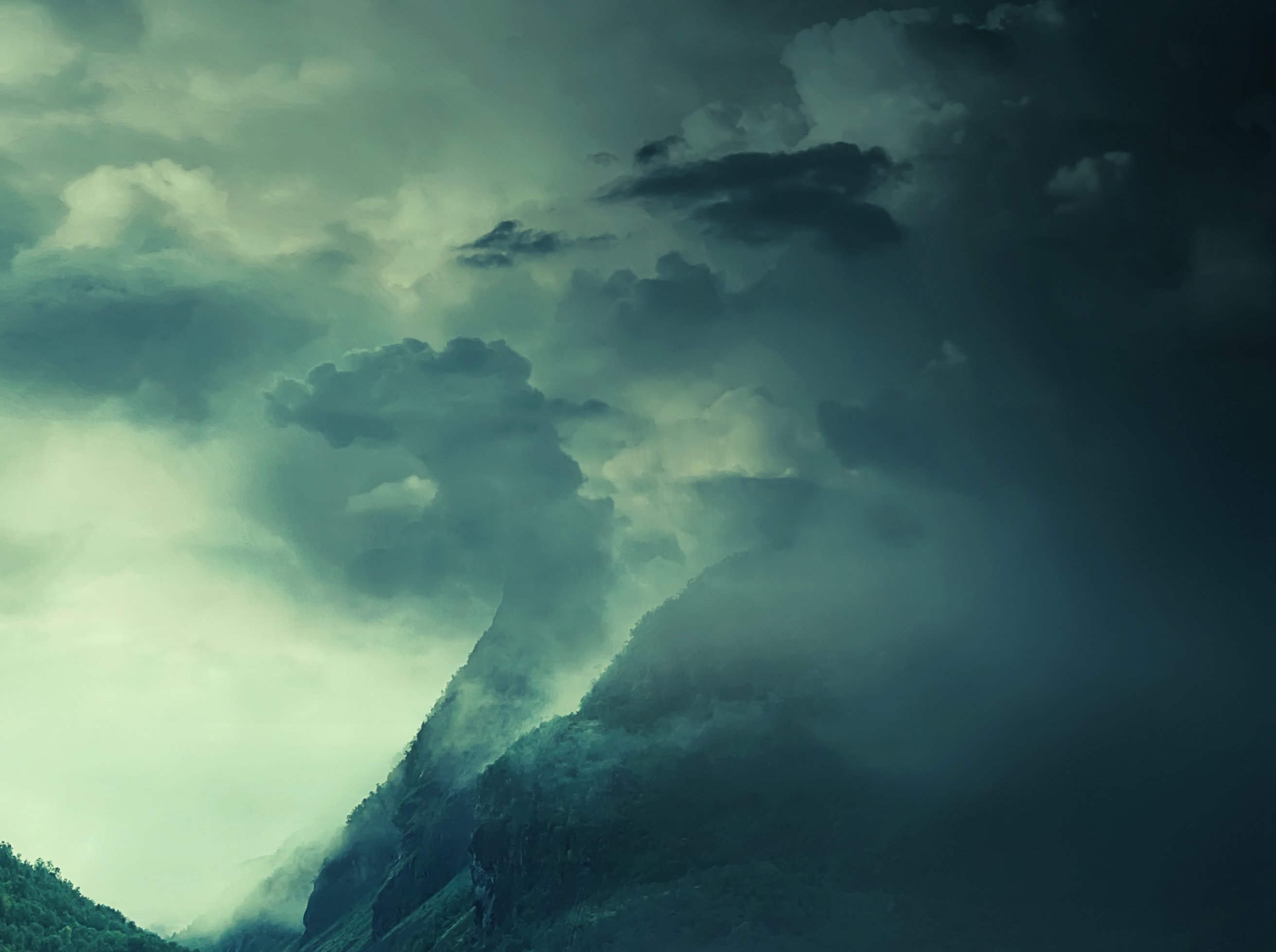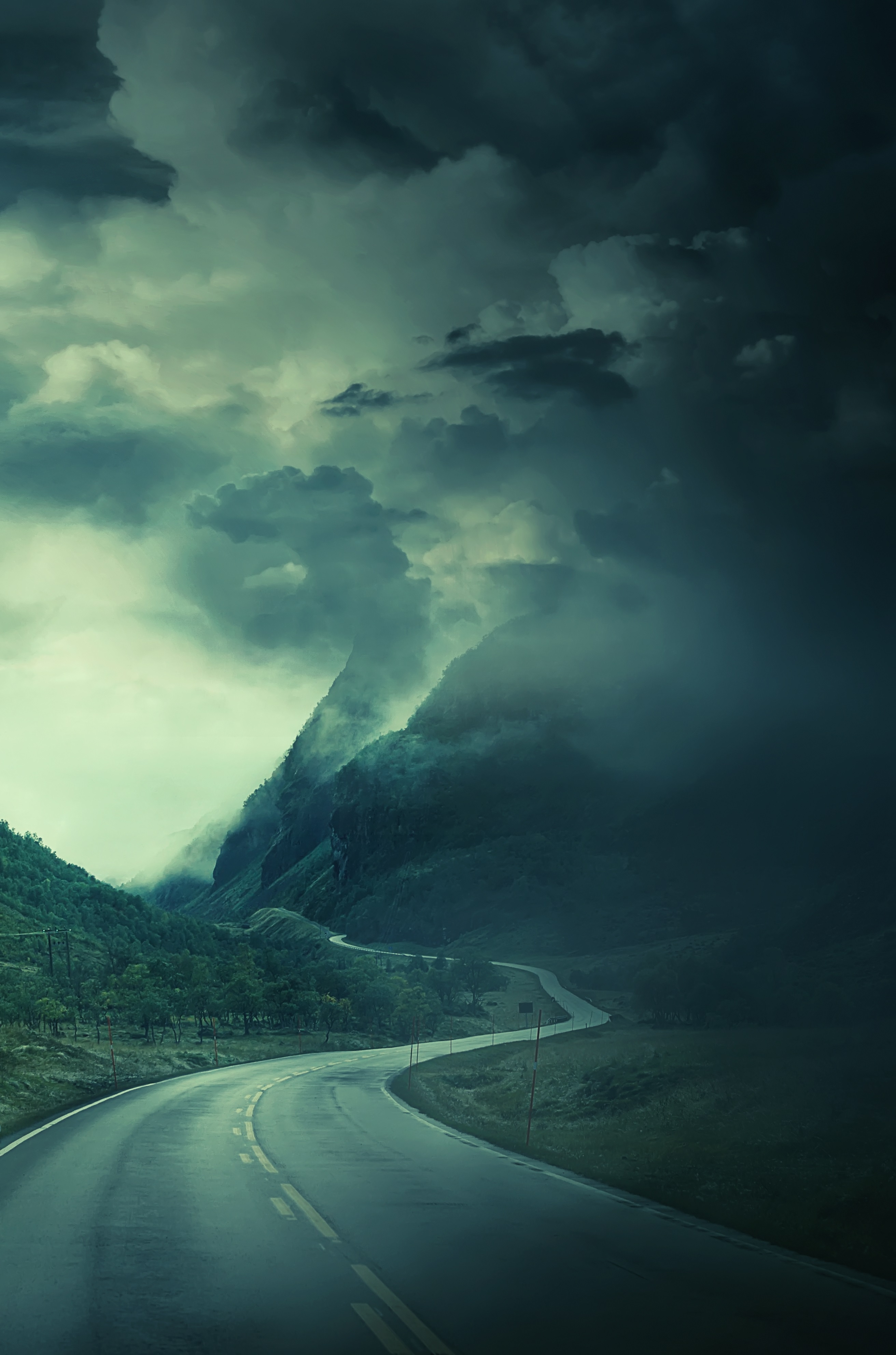 Empty winding road through misty green mountains under dark storm clouds, illustrating uncertain economic outlook in Asia Pacific.