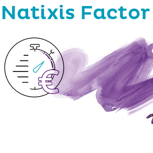Visual promoting Natixis Factor's instant payment service for invoice financing, featuring branding from Natixis Factor and Groupe BPCE.