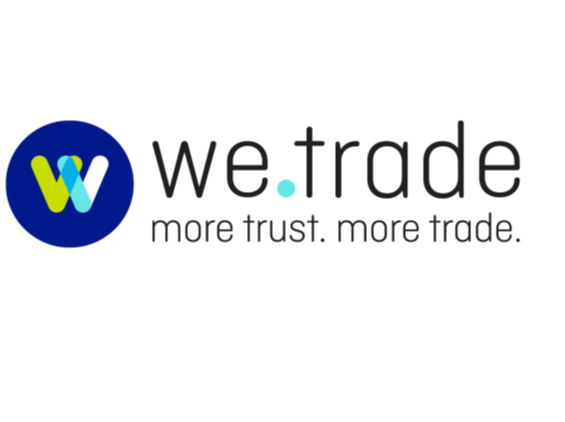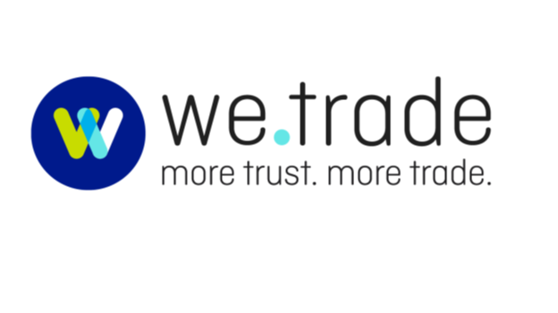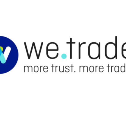 Logo of we.trade, a blockchain-based trade finance platform, featuring the text 'we.trade more trust. more trade.' alongside a stylized 'W' icon.